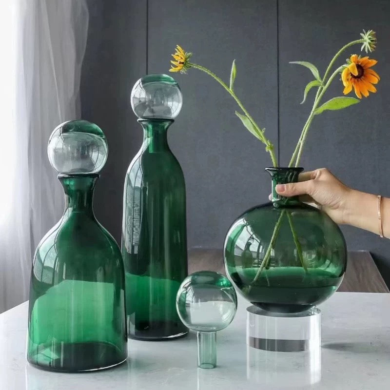 This green glass vase is a stylish addition to any home. The elegant design adds a touch of sophistication to any room, while the durable glass construction ensures long-lasting use. Its vibrant color brings life to any floral arrangement, making it the perfect accent piece for your home decor.